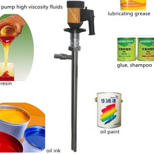 High viscosity barrel pump adopts the design of screw type stator rotor extrusion. It is specially used to extract high viscosity epoxy resin, glycerin, honey, printing ink, juice, gear oil, grease, paint, tomato pulp, shampoo and other high viscosity fluids.